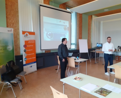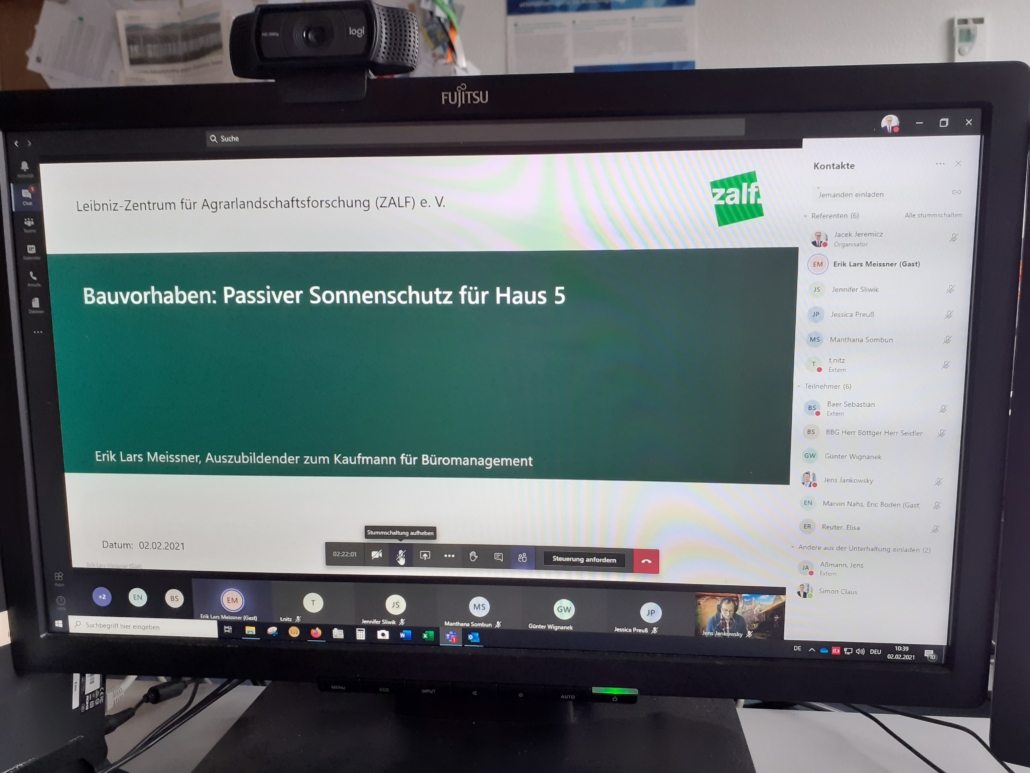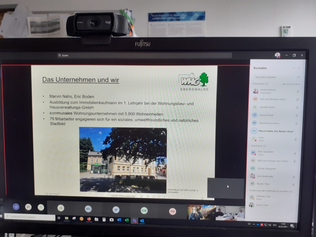 Insgesamt beteiligten sich 10 Azubis aus sechs Unternehmen in Ostbrandenburg (Progroup Paper PM2 GmbH Eisenhüttenstadt, EFG Bär & Ollenroth KG Schwedt/Oder, Tinglev Elementenfabrik GmbH Altlandsberg, Leibniz-Zentrum für Agrarlandschaftsforschung (ZALF) e. V. Müncheberg, WHG Wohnungsbau- und Hausverwaltungs-GmbH Eberswalde, PCK Raffinerie GmbH Schwedt/Oder) an dem Kurs. Sie haben ihre Energieeffizienz-Projekte im Videochat vorgestellt. In den Projekten befassten sich die Azubis u. a. mit der Beleuchtungserneuerung in einer Produktionshalle, dem Austausch von alten Drehmaschinen, der Dachfenstererneuerung in einem Produktionsobjekt, dem passiven Sonnenschutz am Bürogebäude und der Anpassung der Kesselregelung in einem Geschäftsgebäude.