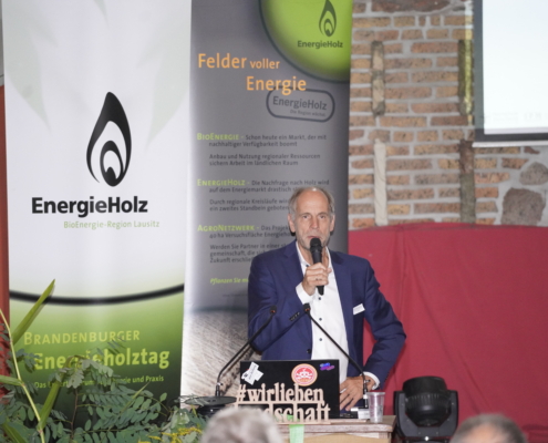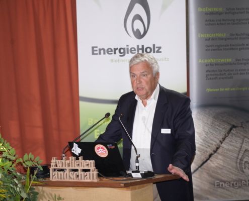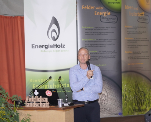Durch viele Praxisbeispiele brachte Johannes Damm (Energy Crops GmbH) den Besuchern Neuerungen im Bereich des Argrarholzanbaus eindrücklich näher. Passend dazu stellte Prof. Tobias Zschunke die Potenziale der Holzvergasung vor, welche wertvolle Rohstoffe zur Energiegewinnung liefert.