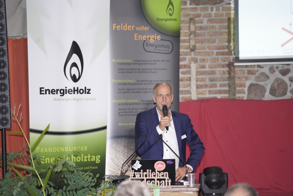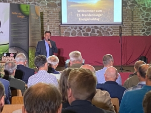 Unter dem Motto „Wertschöpfung mit Holz – von Waldumbau bis Biomassenutzung“ lud die Brandenburgische Energie Technologie Initiative (ETI) gemeinsam mit dem Landschaftspflegeverband Spree-Neiße e.V. und der Technischen Hochschule Wildau am 28.8 zum 21. Brandenburger Energieholztag ein. Traditionell fanden sich wieder Gäste und Referenten aus Wirtschaft, Politik und Forschung in der Museumsscheune in Bloischdorf ein, um sich zu den aktuellen Themen im Bereich der Energieholznutzung sowie Entwicklungen in der Politik auszutauschen sowie bewährte Kontakte zu pflegen und neue Verbindungen aufzubauen.