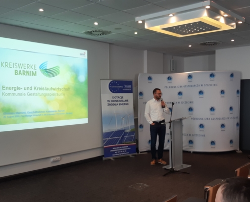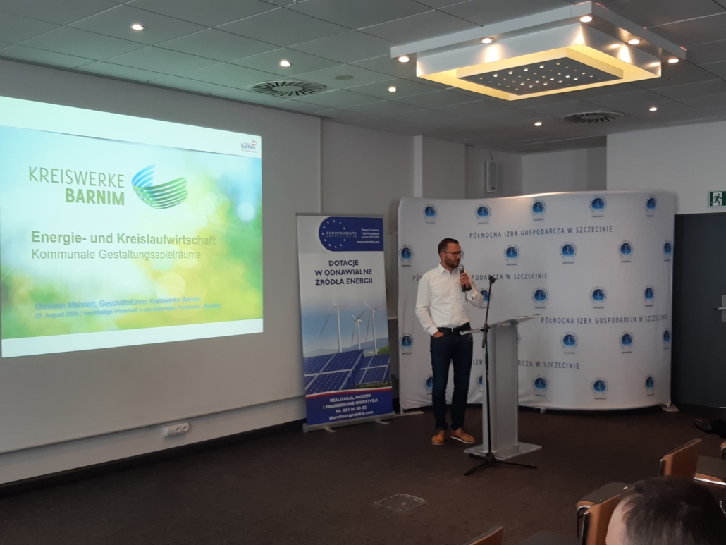 Bei der Veranstaltung ging es um vielfältige Themen der Zusammenarbeit, denen sich zurzeit viele Unternehmen widmen: Initiativen des Ausbaus von Windanlagen und Hemmnisse in Deutschland und Polen, Förderung von Wärmepumpen, ökologische Schulausbildung, nachhaltiger Bau von Gebäuden und betriebliches Mobilitätsmanagement. Die Metropolregion Stettin ist neben Pommern eine Region in Polen, die den Ausbau regenerativer Energie erfolgreich vorangetrieben hat. In Präsentationen von brandenburgischen Landkreisen und Städten sowie der Firma Enertrag AG wurde die Wasserstoffstrategie als Alternative zu Elektromobilität hervorgehoben, mit der Möglichkeit, regionale Wertschöpfung im ländlichen Raum aufzubauen.
