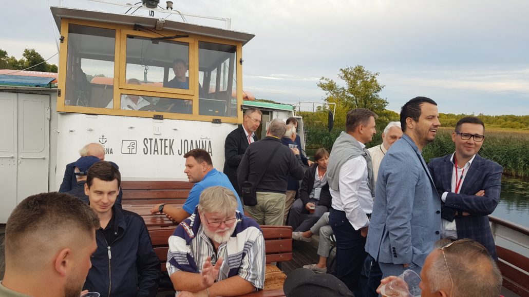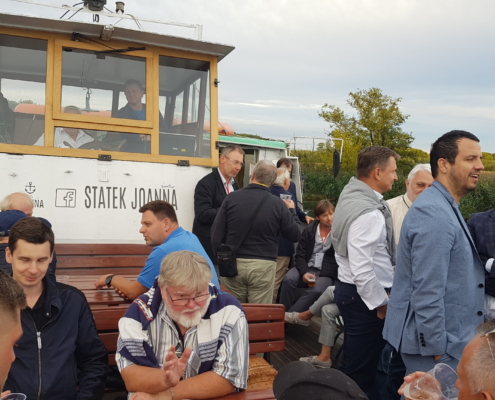 Unter Beachtung strenger Hygienemaßnahmen, die vom Tragen einer Maske bis hin zu eingeschweißten Kaffeebechern und Lunchboxen reichten, konnten sich im Novotel Szczecin über 60 polnische und deutsche Akteure austauschen. Gut durchlüftet während einer Rundfahrt durch den Stettiner Hafen an Deck eines Ausflugsschiffes hatten die Teilnehmer am Abend bei einem Buffet die Gelegenheit, sich näher zum Thema nachhaltiges Wirtschaften auszutauschen.